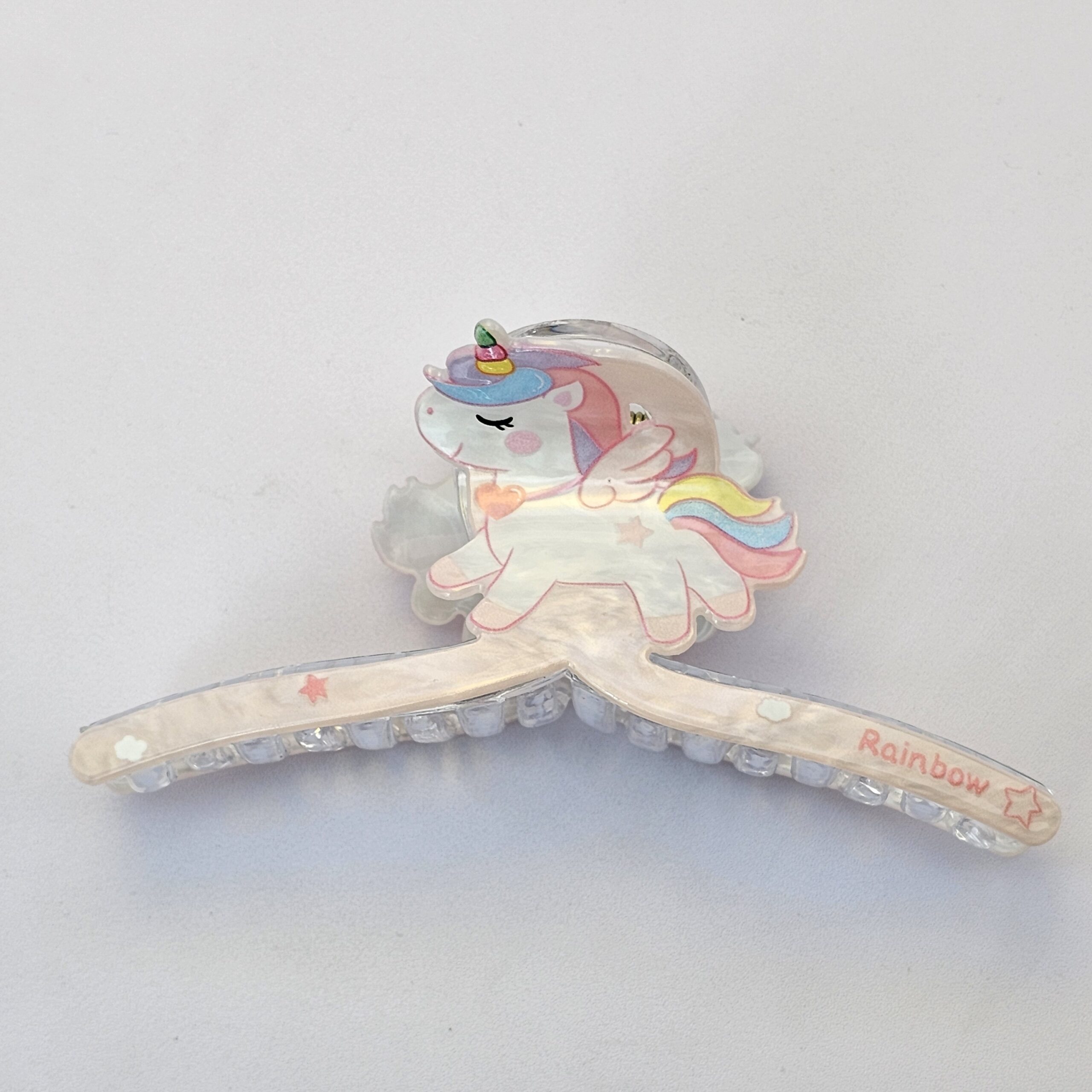 بدنهی کلیپس از پلاستیک مقاوم و سبک تولید میشه تا روی موهات راحت بشینه و هیچ حس سنگینی یا کشیدگی ایجاد نکنه. جزئیات دقیق و رنگین کمان روی یونیکورن، این کلیپس رو تبدیل به یه اثر هنری کوچک کرده که در هر جمعی نگاهها رو به خودش جلب میکنه. ابعاد مناسبش باعث میشه چه موهات کمپشت باشه، چه متوسط، راحت روی موهات قرار بگیره و فنر نرمش، جمع کردن موها رو بدون دردسر و آسیب ممکن میکنه.
